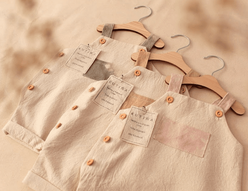 Jardineritas 100% algodón, bolsillo y tirantes tratados con tintes naturales, abertura al costado, botones de madera.