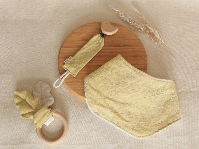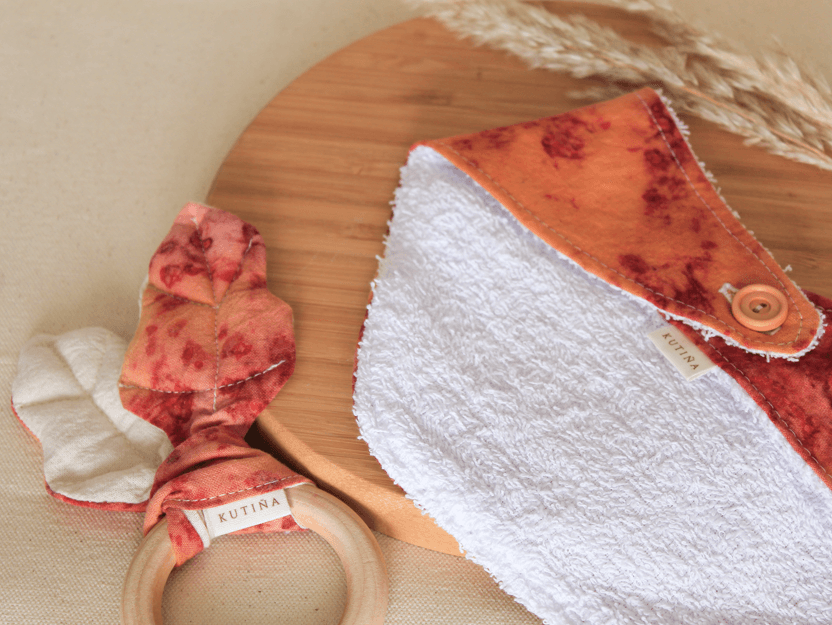 - Babero estilo bandana, algodón 100%, toalla al reverso, 2 botones de madera para ajuste ideal.
