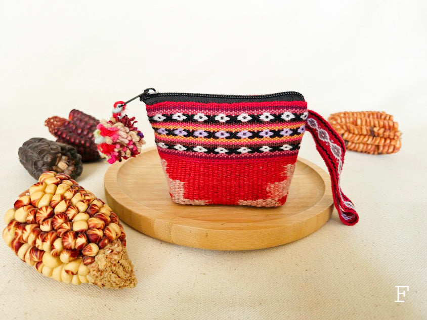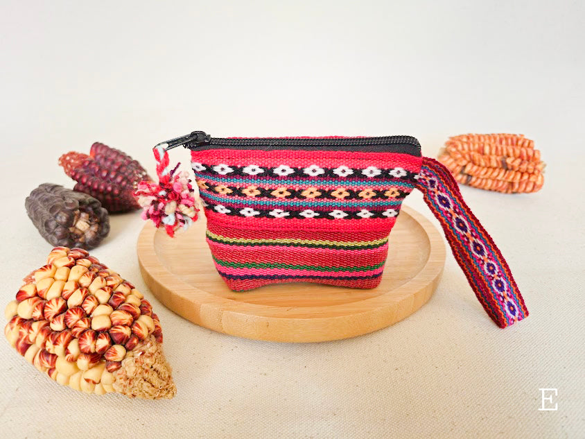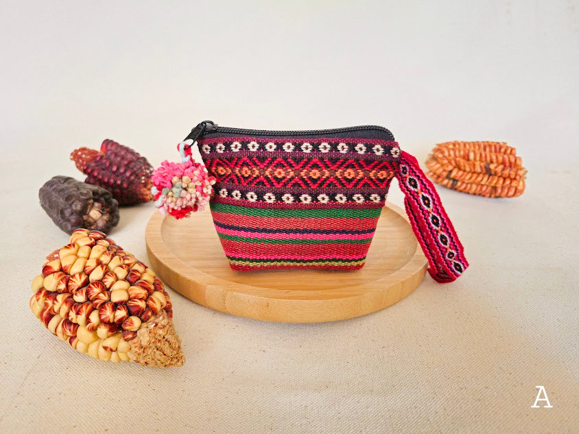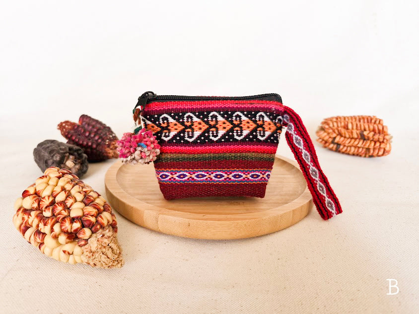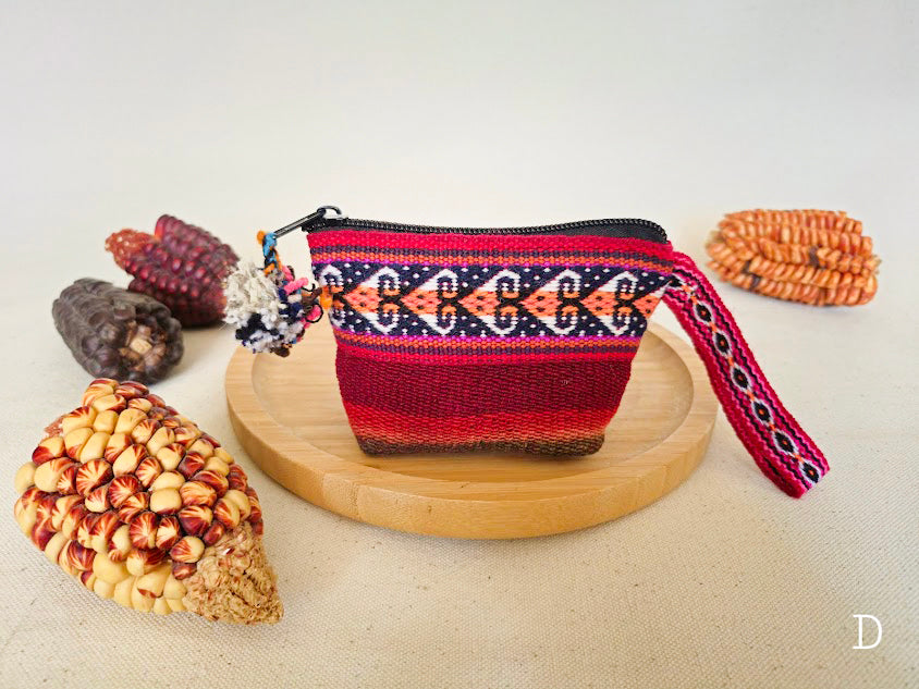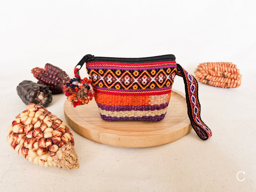 Monederos tejidos con técnica ancestral andina por tejedoras Inca del valle sagrado de Cusco, Perú.
